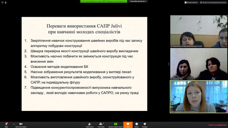 29 січня 2020 року на базі Навчально-практичного центру сучасних швейних технологійЧернігівського вищого професійного училища побутового обслуговування відповідно до плану роботи Навчально-методичного центру професійно-технічної освіти в Чернігівській області відбувся он-лайн майстер клас на тему "Використання програмного комплексу САПР "Julivi" при побудові та моделюванні жіночих спідниць. Провели майстер-клас досвідчені викладачі Ходякова Марина Віталіївна та Нестеренко Галина Анатоліївна.