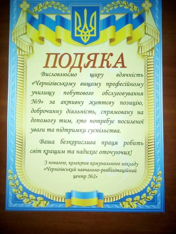 Вже не перший рік учнівський та педагогічний колектив Чернігівського вищого професійного училища побутового обслуговування долучається до щорічної масштабної благодійної акції "Твори добро на радість людям", організованої психологічною службою закладу.